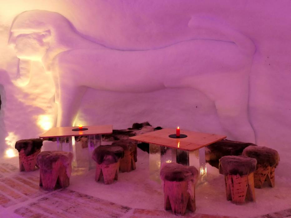 Schlafen wie die Eskimos! Ein Übernachtung im Iglu-Dorf auf 2.000 Meter ist ein unvergessliches Erlebnis. Im Eishotel kann man auf Rentierfellen in wohlig warmen Schlafsäcken die Nacht genießen. Das besondere Ambiente der Eisräume verzaubert. Gute Laune ist bei Glühwein, Sekt, Wein und einem alpinen Käsefondue garantiert.