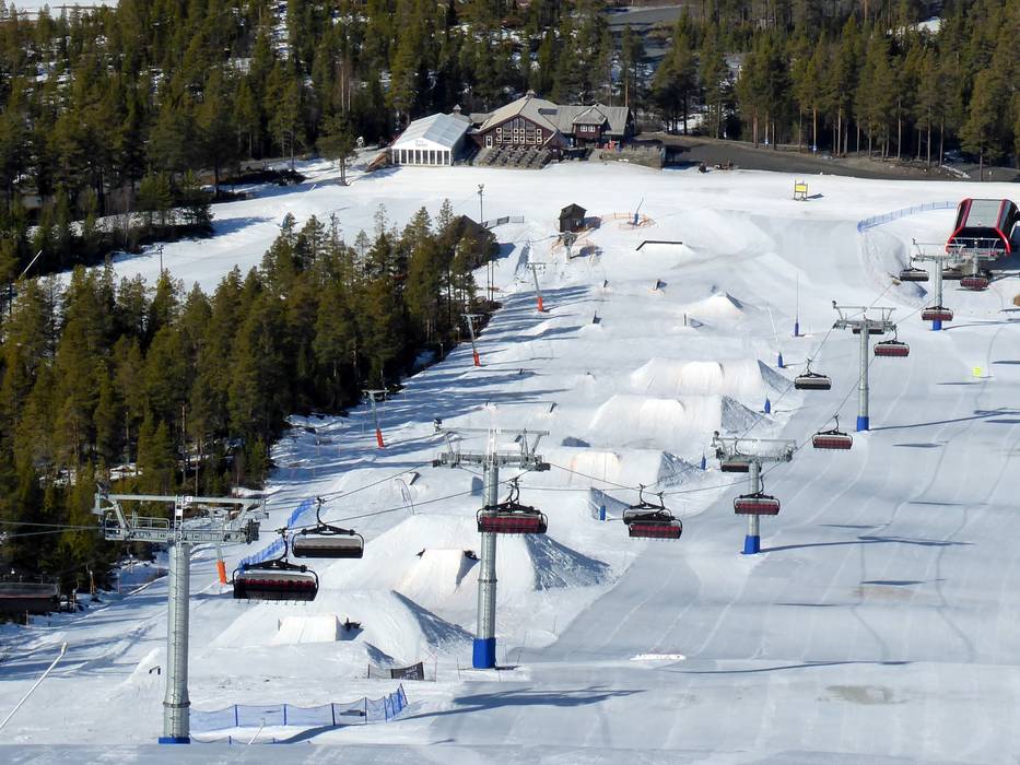 Das Skigebiet Nesfjellet bietet zwei Snowparks für jede Könnensstufe im unteren Bereich des Wintersportgebiets.
