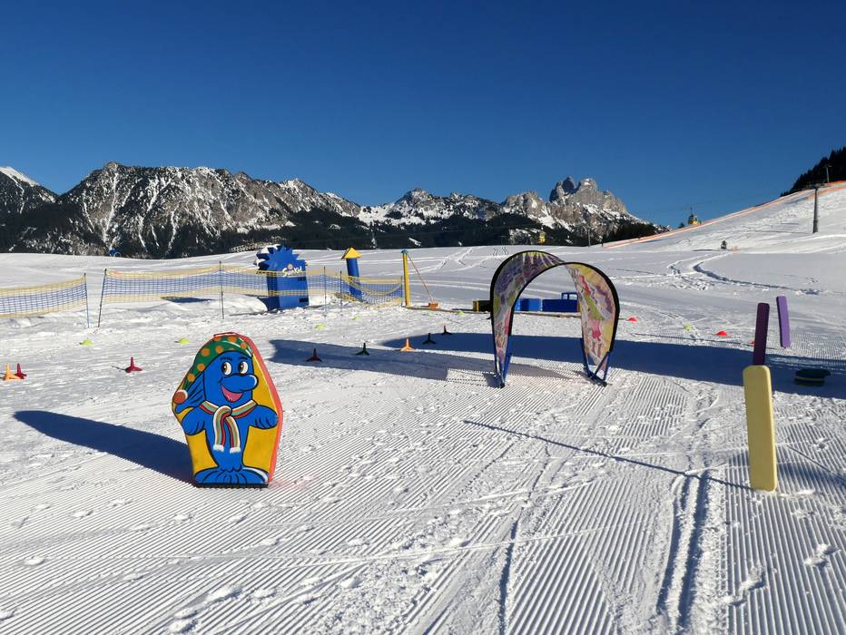 Das Kinderland von Ulli's Erlebnisskischule befindet sich neben dem Ice Age Kinderland. Es bietet einen Zauberteppich und viele bunte Lehrmaterialien.