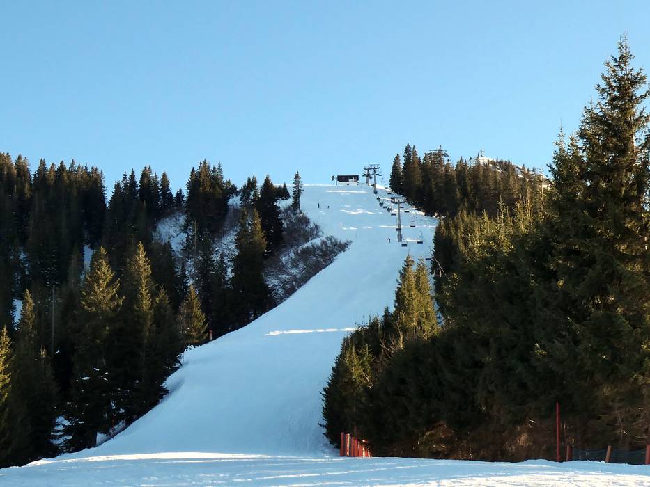 Die Piste ist sehr breit, sanft geneigt und ideal für ausgiebige Carvingschwünge.