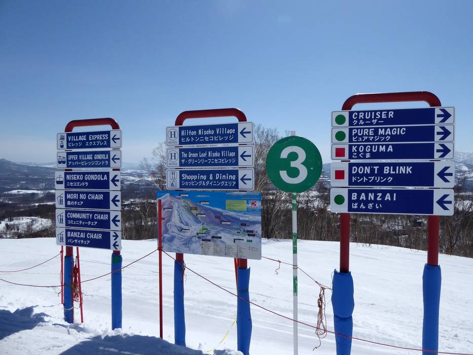 Die Ausschilderungen im Skigebiet Niskeo United sind sehr gut. Alle Pisten und Lifte sind perfekt in japanischer und englischer Sprache ausgeschildert. Überall findet man aktuelle Informationen und Öffnungszeiten. Eine Orientierung im Skigebiet von Niseko United ist somit sehr leicht möglich.