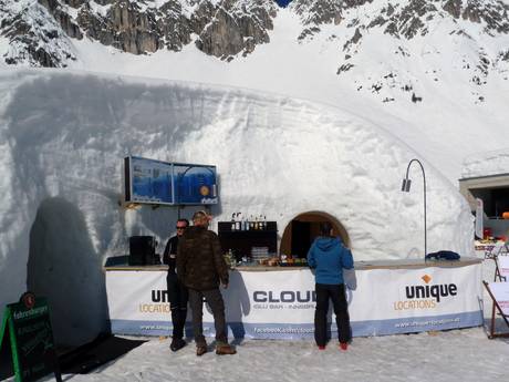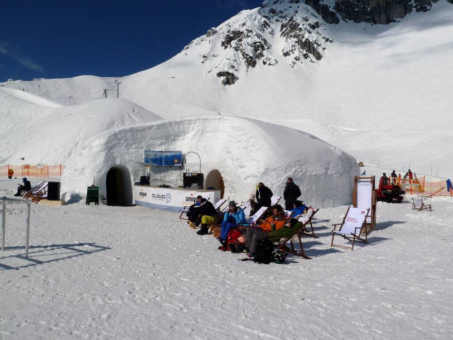 Die Iglubar Cloud9 ist die größte Schnee-Iglu-Eventarena der Alpen. Zwei Bars laden zu Cocktails und Snacks ein. Bei schönem Wetter kann man im Liegestuhl die Sonne genießen.