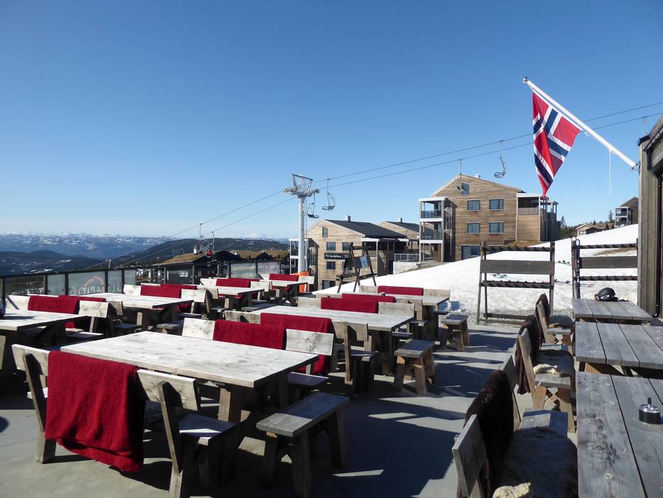 In Norefjell gibt es gute Restaurants und Hütten im Skigebiet verteilt. Von den Sonnenterrassen hat man oft einen tollen Ausblick auf die Berge und den Krøderen-See.