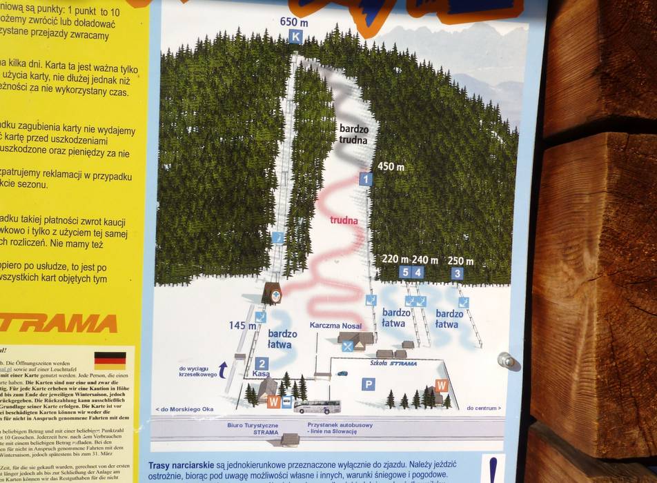 Das Skigebiet Nosal befindet sich am Rand von Zakopane ist aufgrund der leichten Pisten im Talbereich gerade bei den Anfängern sehr bliebt.