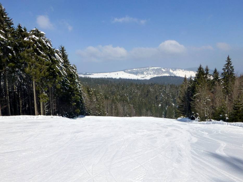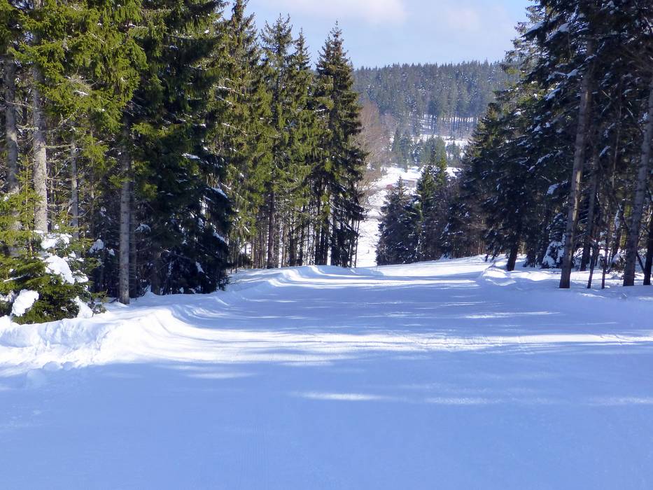Die Hauptabfahrt ist leicht einzustufen. Eine kleine "Abkürzung" ist mittelschwer. Anfänger können das Übungsareal am Förderband benutzen.