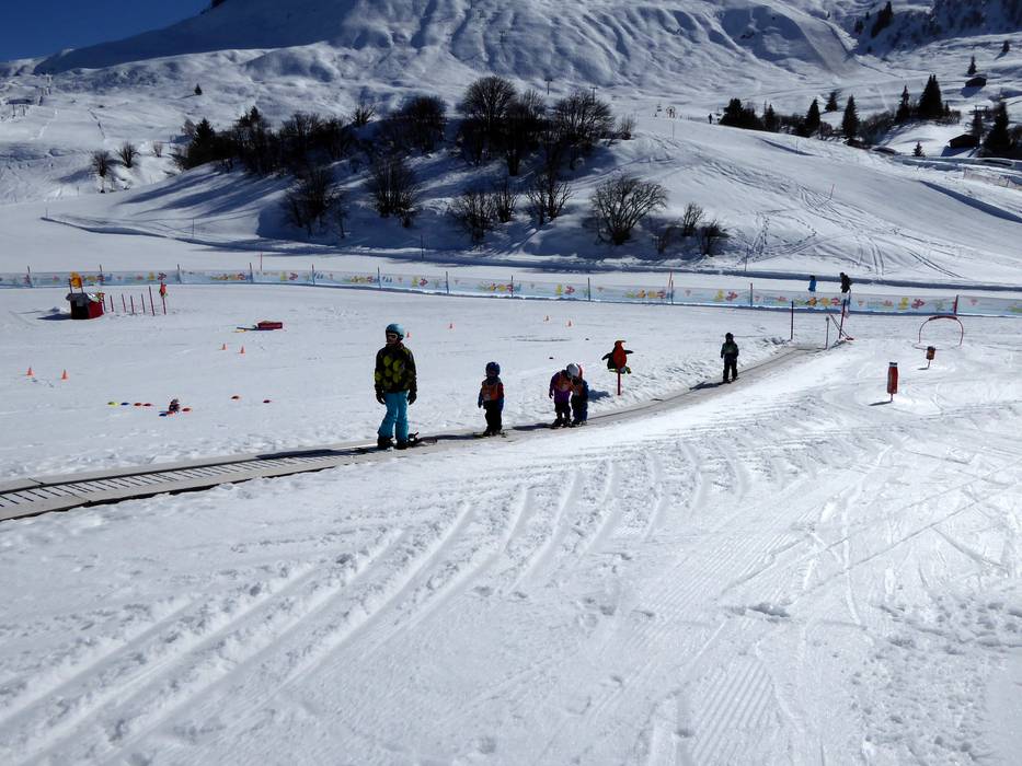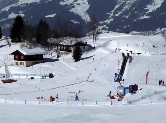 In Chummenbühl betreibt die Skischule Obersaxen ein großes Kindergelände im Talbereich. Förderbänder sorgen für einen reibungslosen Transport und Familien mit Kindern fühlen sich hier sehr wohl.