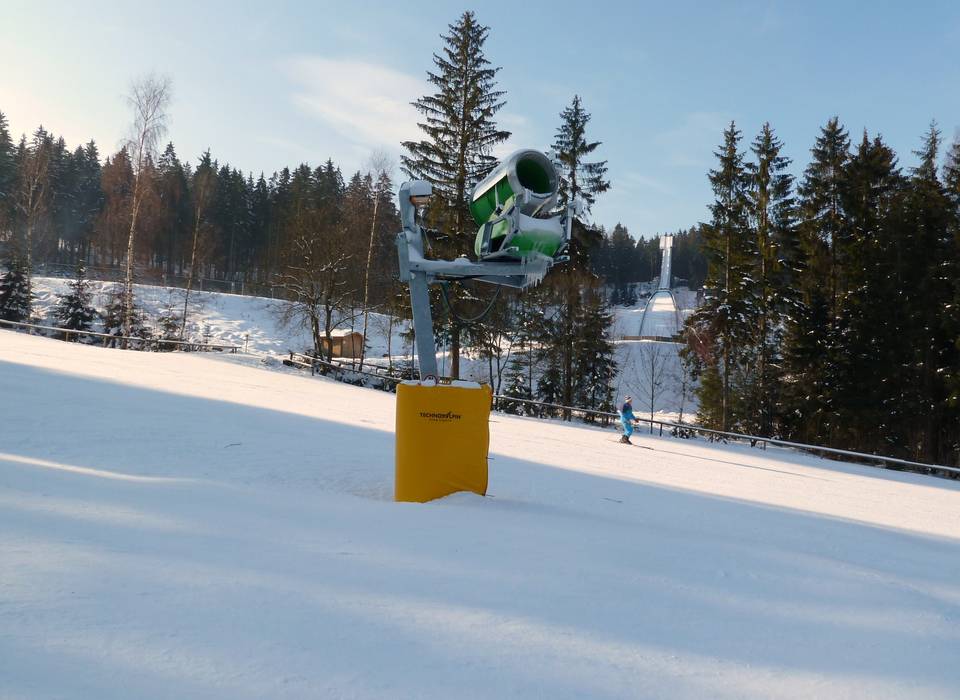 Die komplette Nordabfahrt kann beschneit werden. Zusätzlich die Übungsbereiche Nord und Süd. Dank der Beschneiung kann ein Skibetrieb zwischen Dezember und März sichergestellt werden.