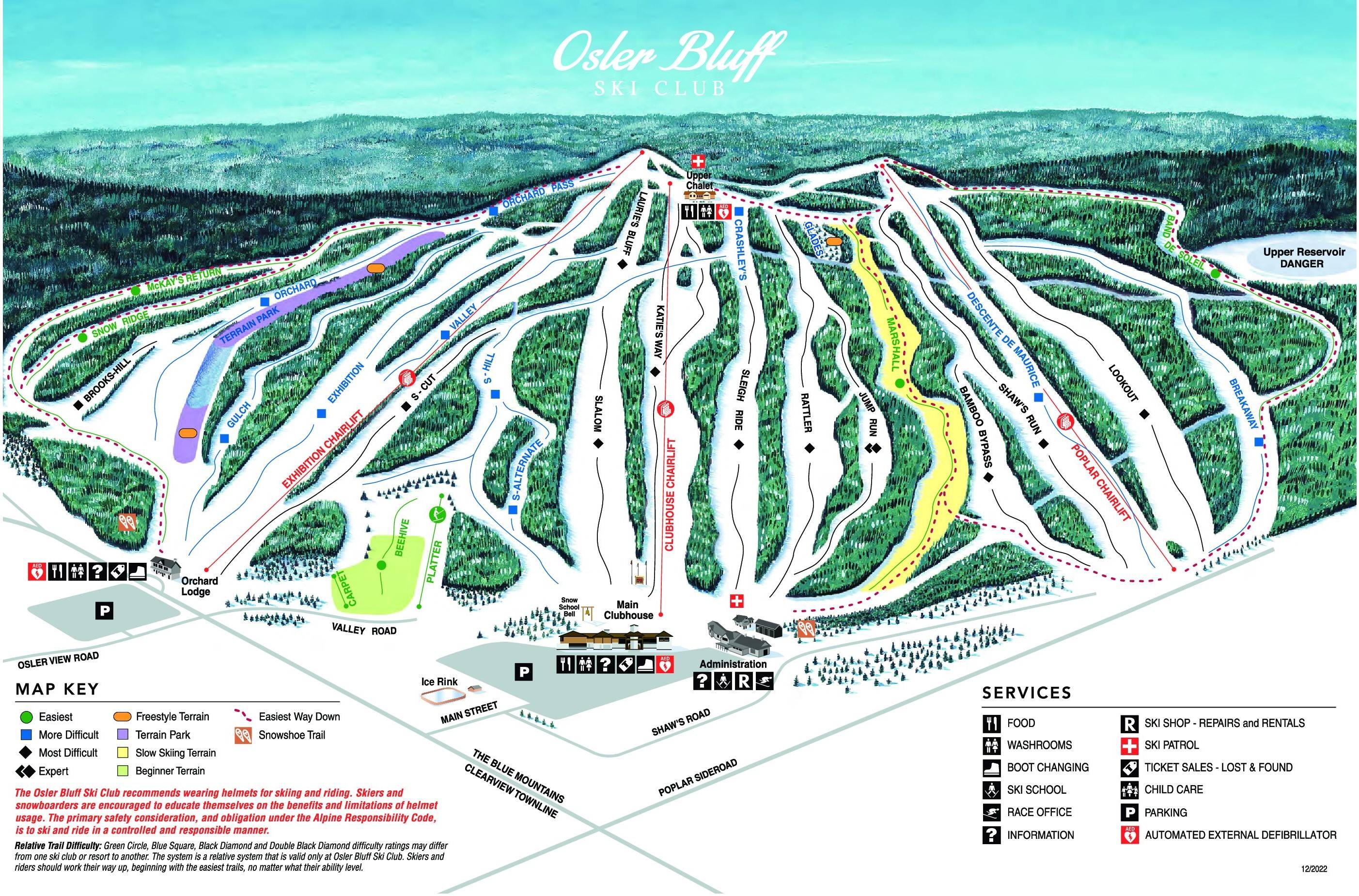 Pistenplan Osler Bluff Ski Club Saison 2024/2025