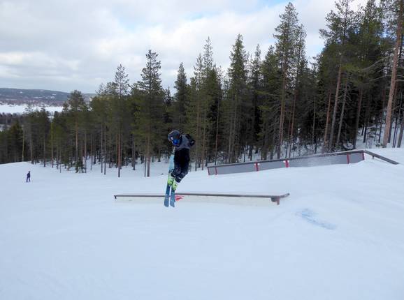 Das Skigebiet Ounasvaara bietet einen sehr schönen Snowpark an der Doppelsesselbahn. In Rendi's Snow World sind auch ganz leichte Snowpark-Elemente zum Üben verfügbar.
