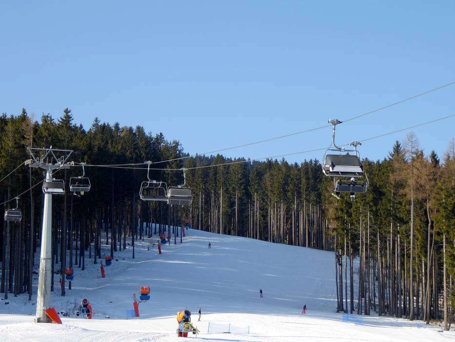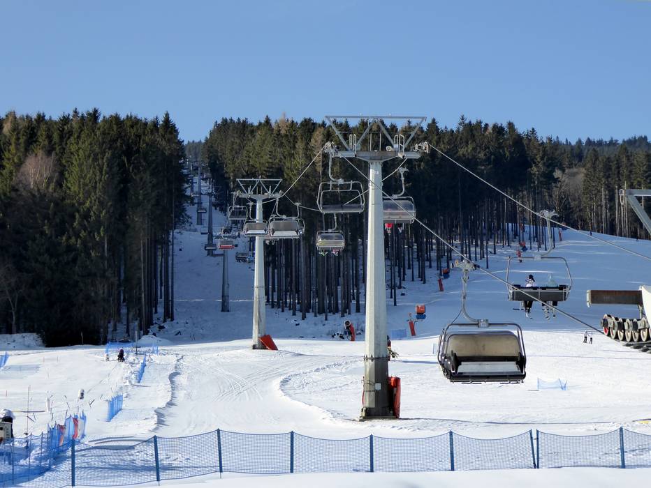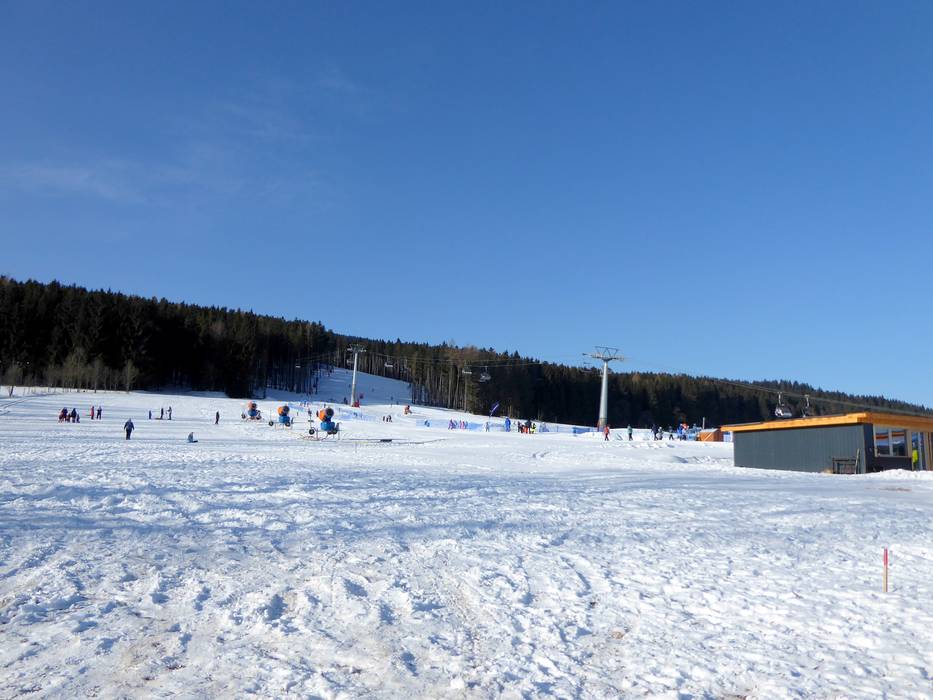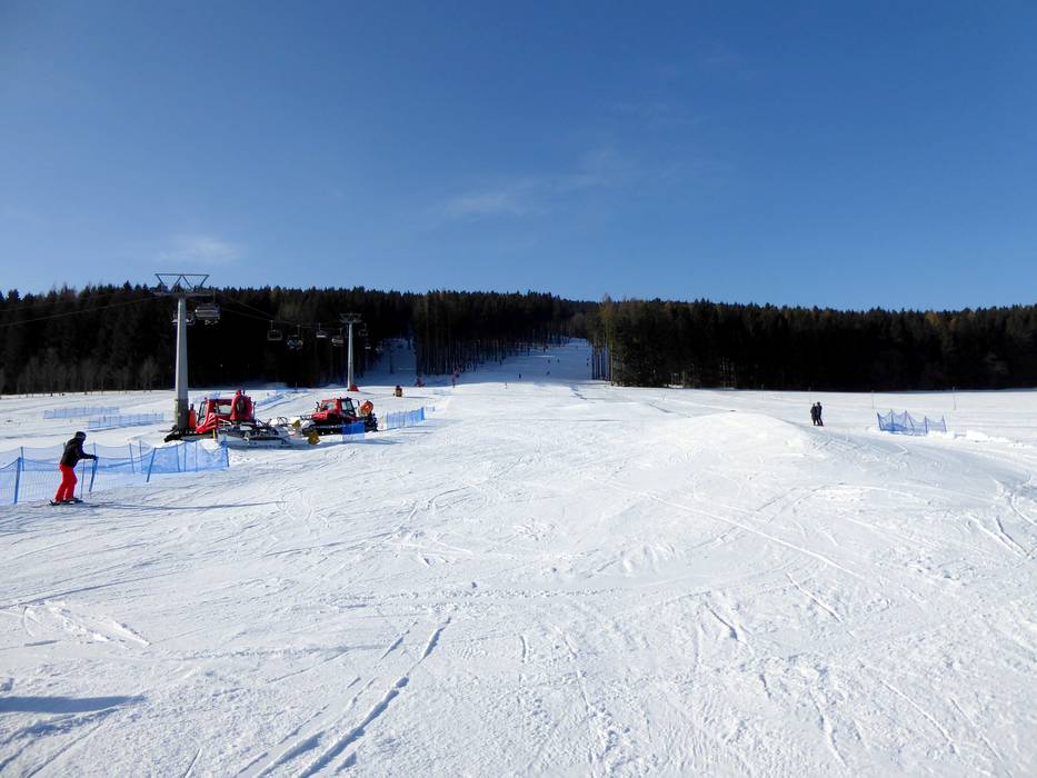 Blick auf das Skigebiet in Orlické Záhoří Kinderland in Orlické Záhoří Blick auf das kleine Skigebiet in Orlické… Breite Waldabfahrt an der 4er-Sesselbahn Piste im Skigebiet in Orlické Záhoří Vlek pro začátečníky Ož - Seillift/Babylift mit… Schneekanonen in Orlické Záhoří Pistenplan am Skigebiet Skiož Kleiner Kiosk an der Talstation Kinderland an der Talstation Bild Ož – Orlické Záhoří