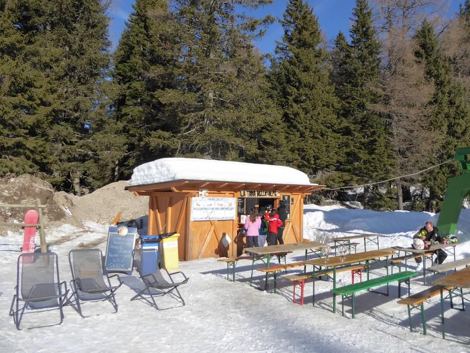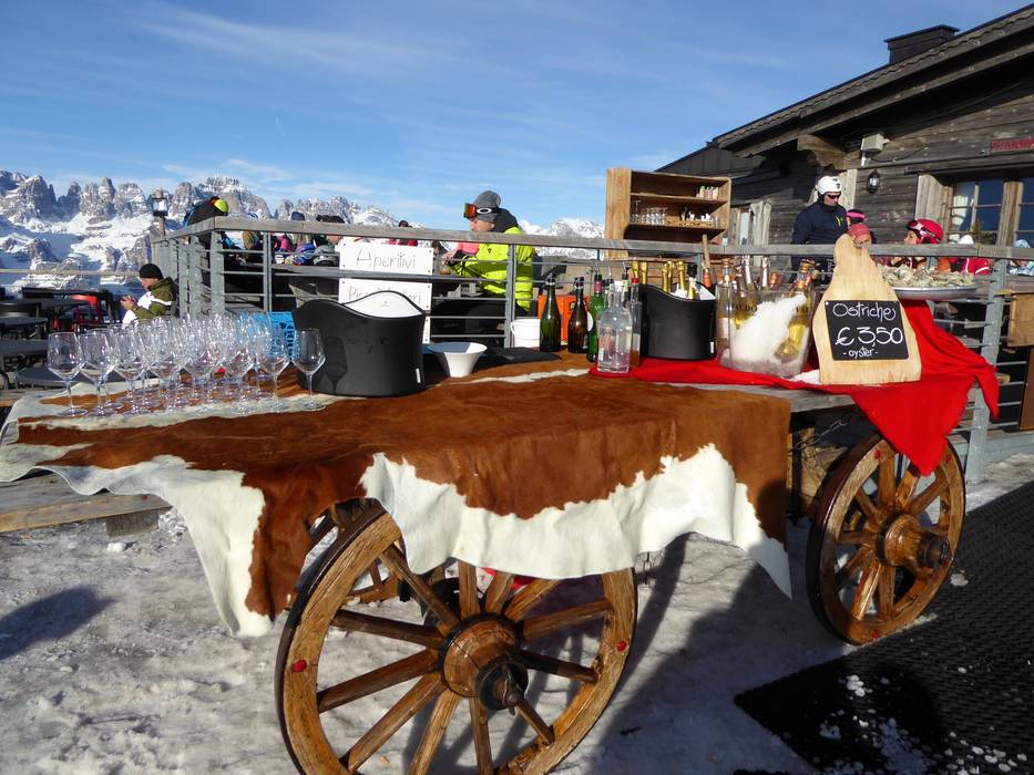 Das Dosso Larici ist eine urige Berghütte mit Kachelofen und gemütlicher Bar. Hier trifft man sich schon am Vormittag, um auf den schönen Skitag anzustoßen. Von der Sonnenterrasse hat man einen herrlichen Blick ins Tal.