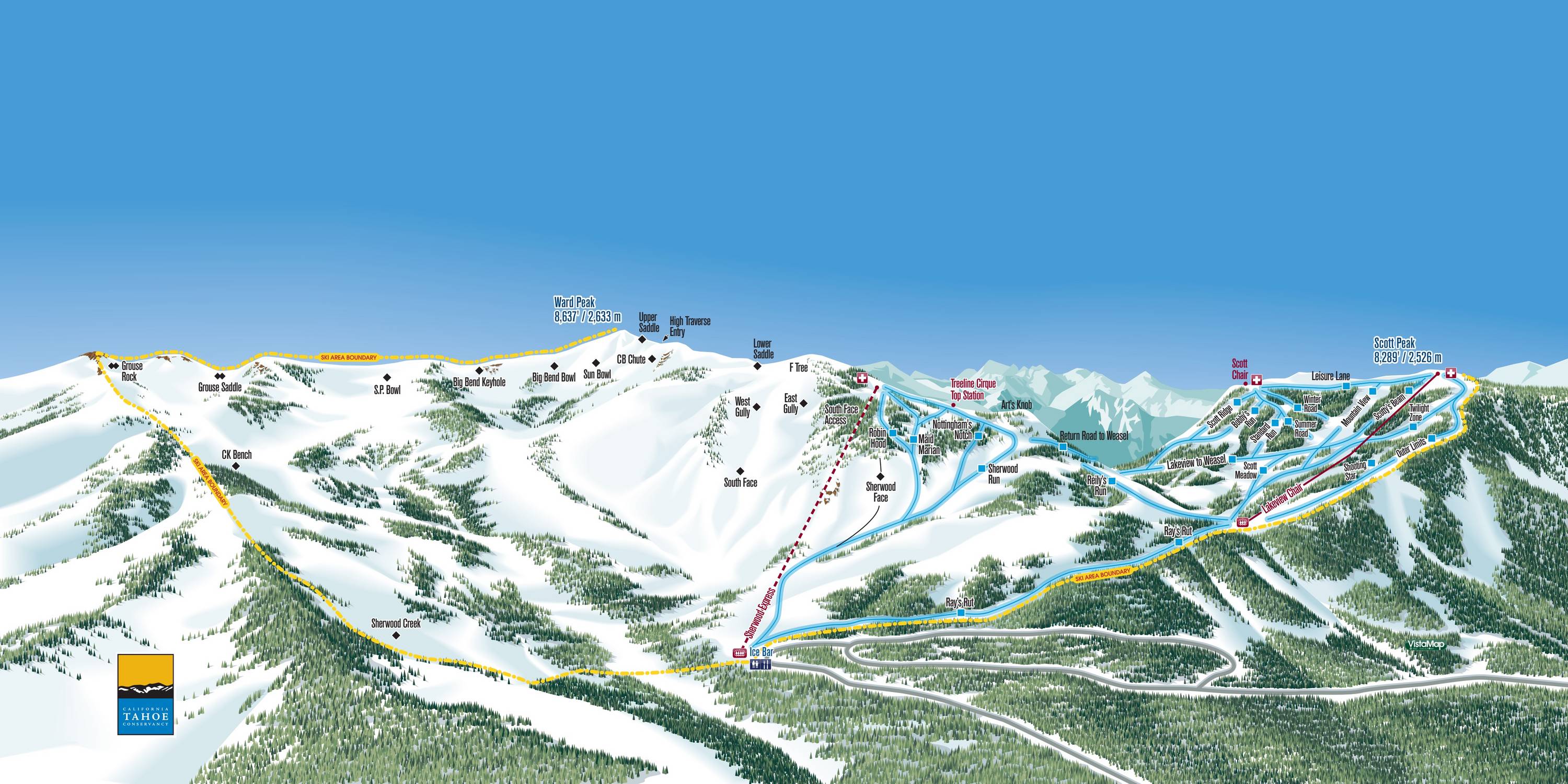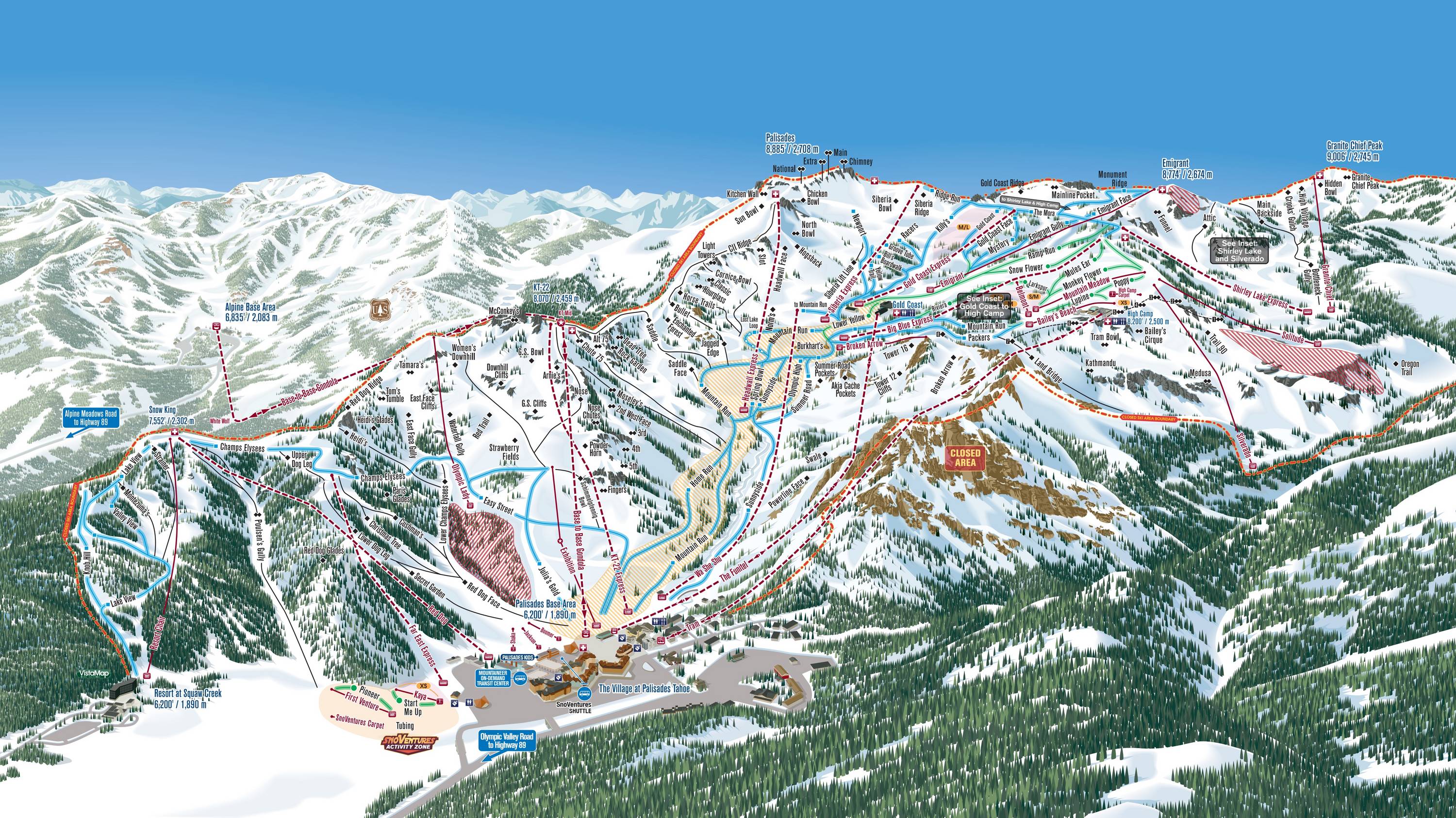 Der Pistenplan bildet das Skigebiet Palisades Tahoe sehr gut ab. Die Lifte und Bahnen sind alle gut eingezeichnet, jedoch leider nicht alle Abfahrten im Detail. Generell hat man aber einen sehr guten Überblick über das gesamte Skigebiet.