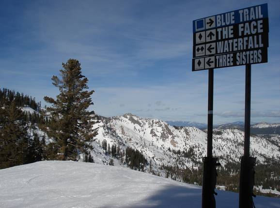 Orientierung (Pistenplan, Informationstafeln, Ausschilderung) und Sicherheit im Skigebiet Palisades Tahoe