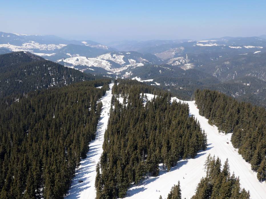 Das Skigebiet liegt rund um den Gipfel Snezhanka (1.926 m), der durch den 156 Meter hohen Fernsehturm von weitem zu erkennen ist. Fast alle Sesselbahnen kommen hier am Gipfel an. Von der Aussichtsplattform des Fernsehturms kann man das Skigebiet herrlich überblicken. Pamporovo ist in mehrere verbundene Bereiche, den sogenannten Ski centers aufgeteilt: 1 Avtogara, 2 Malina, 3 Studenets und 4 Stoykite