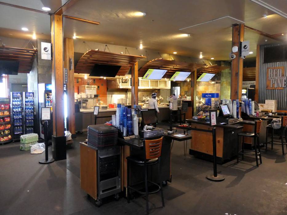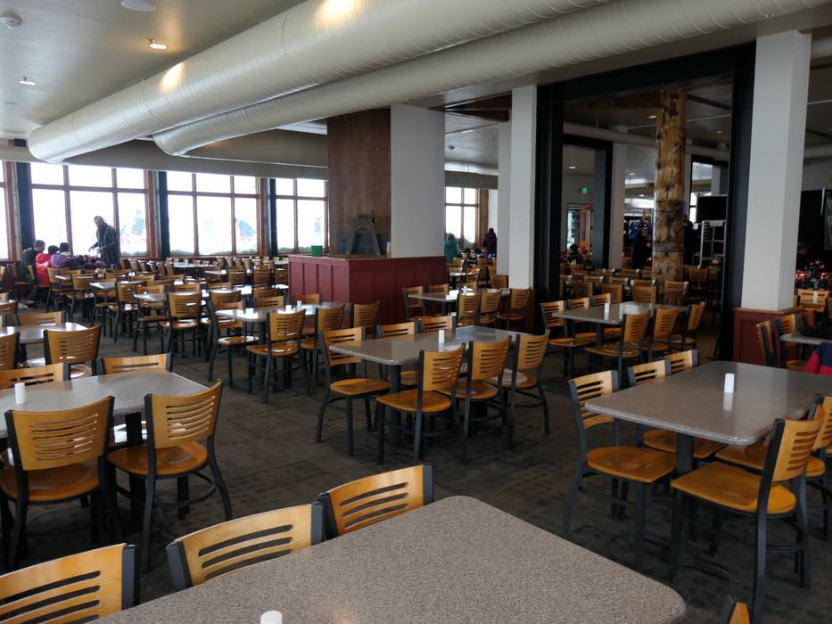 Die Red Pine Lodge ist ein großes Selbstbedienungsrestaurant mitten im Skigebiet.