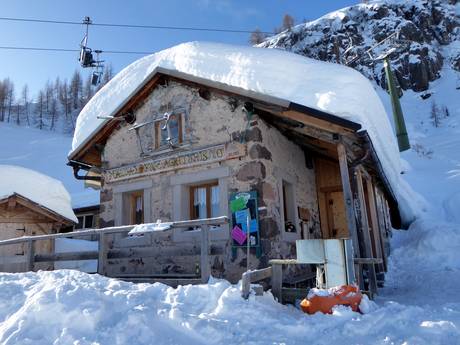 Im gesamten Skigebiet gibt es sehr viele einladende Hütten. Es werden insbesondere lokale Spezialitäten serviert.