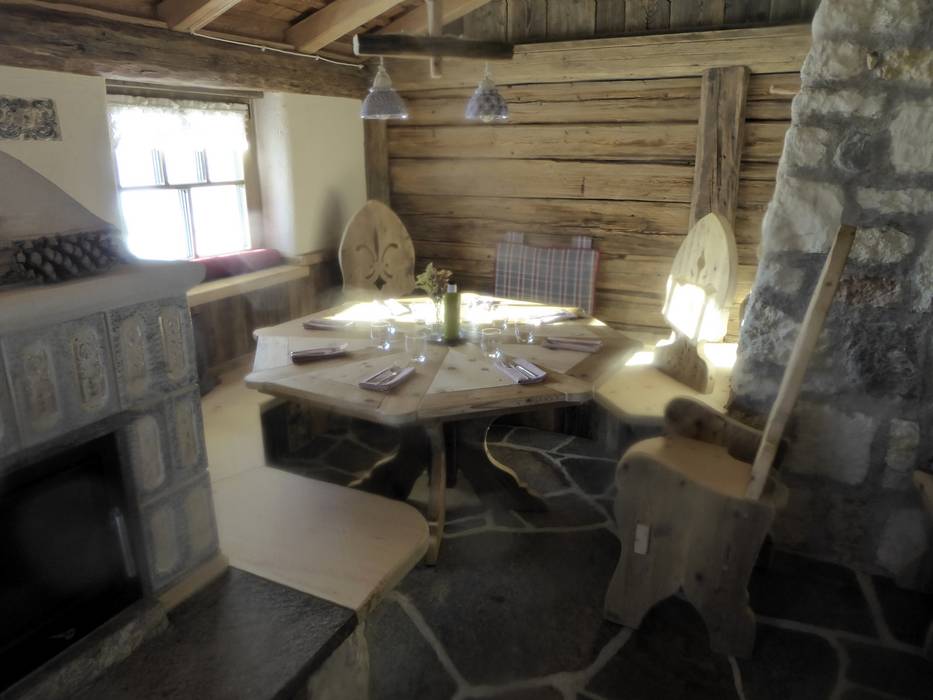 Gemütliche Hütte mit einer großen Fensterfront und herrlicher Aussicht auf die Dolomiten