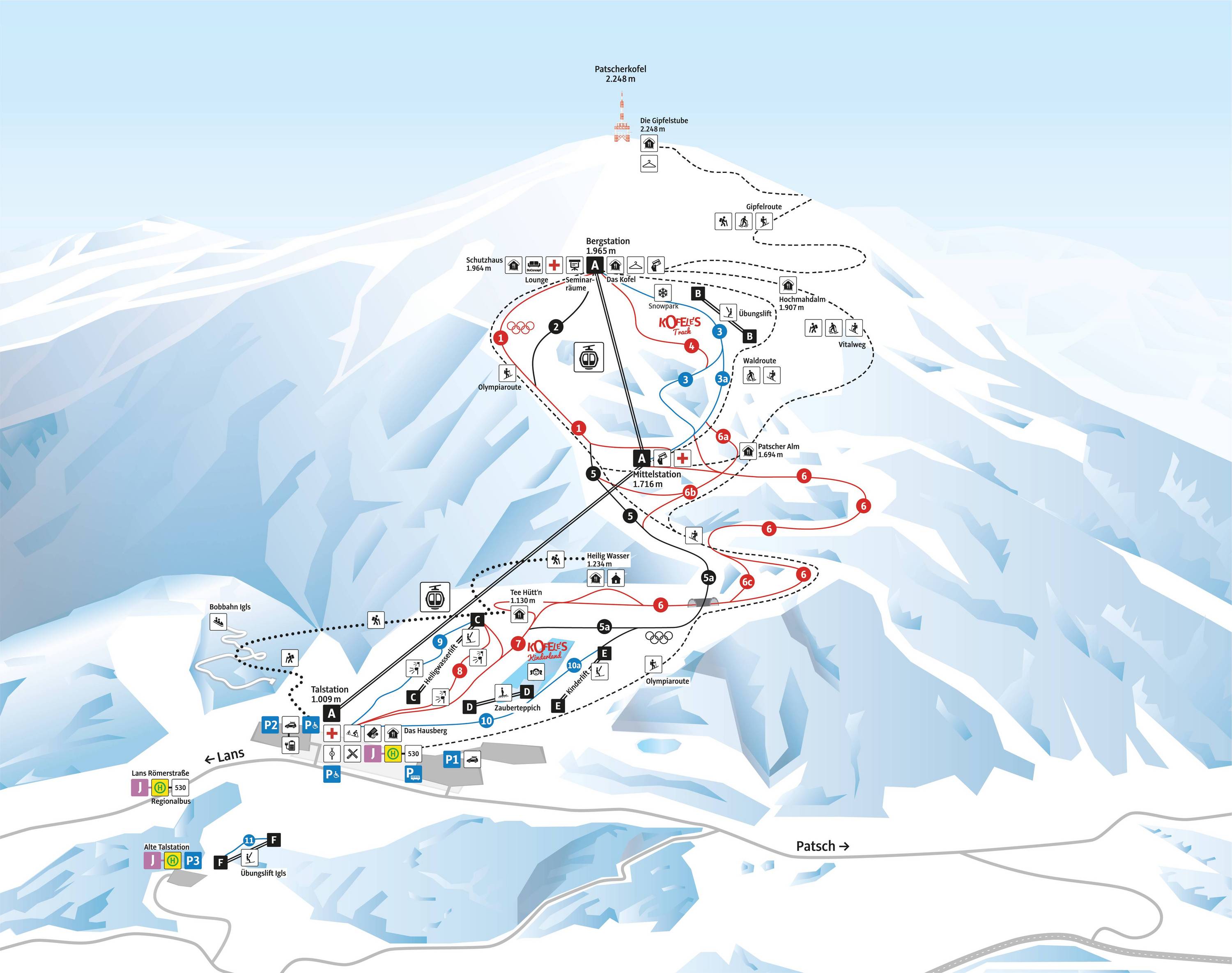 Orientierung (Pistenplan, Informationstafeln, Ausschilderung) und Sicherheit im Skigebiet Patscherkofel – Innsbruck-Igls