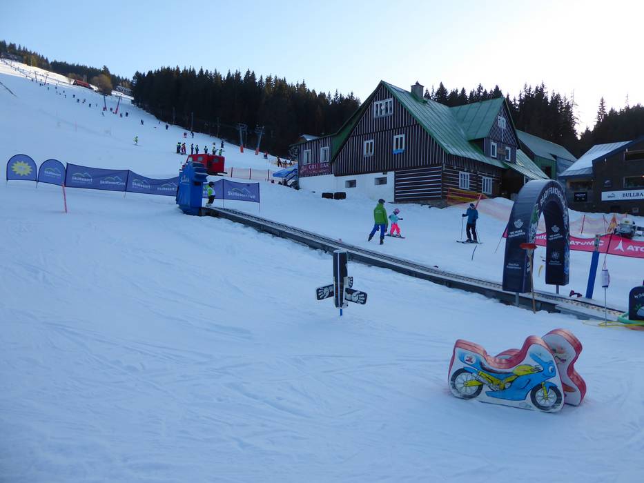 Das Skigebiet Pec pod Sněžkou ist familien- und kinderfreundlich. Direkt an der Talstation gibt es den Live Park Javor mit Förderbändern und lustigen Figuren. Im Skigebiet selber warten eine Funslope und breite Pisten.