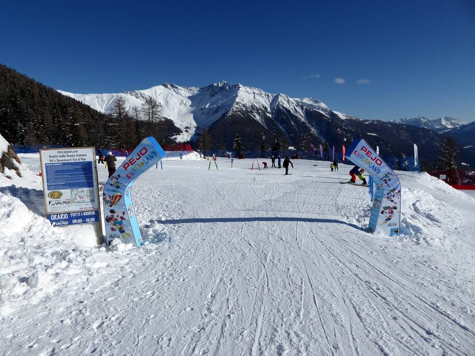 Das Skigebiet Pejo ist familien- und kinderfreundlich. Spezielle Angebote locken Familien nach Pejo. Hier werden Unterkunft, Skipass und Skischule in einem attraktiven Paket angeboten. An der Mittelstation Tarlenta gibt es das Kinderland Pejo. Die Pisten sind breit und für die ganze Familie gut zu meistern. Zusätzlich bieten der Snowpark Pejo (Family Park) und die Funslope Spaß für die ganze Familie. Im nahegelegenen Ort Cogolo gibt es zusätzlich noch den Biancaneve Snowpark.