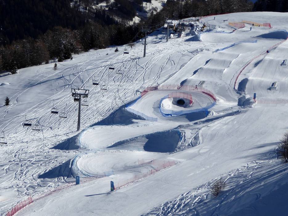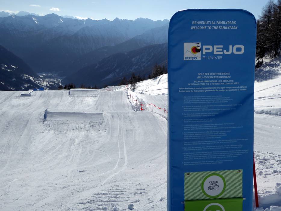 Das Skigebiet Pejo bietet einen kleinen Snowpark für Familien und parallel dazu eine Funslope.