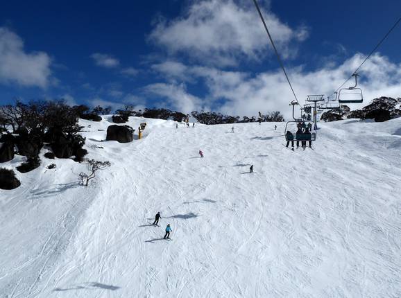 Talabfahrten führen zu allen Skiliften im Skigebiet Perisher. Bis hinunter zur Talstation der Skitube Bullocks Flat gibt es keine Pisten. Hier nutzt man die Zahnradbahn als Zubringer ins Skigebiet.