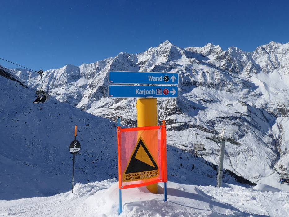 Orientierung (Pistenplan, Informationstafeln, Ausschilderung) und Sicherheit im Skigebiet Pfelders (Moos in Passeier)