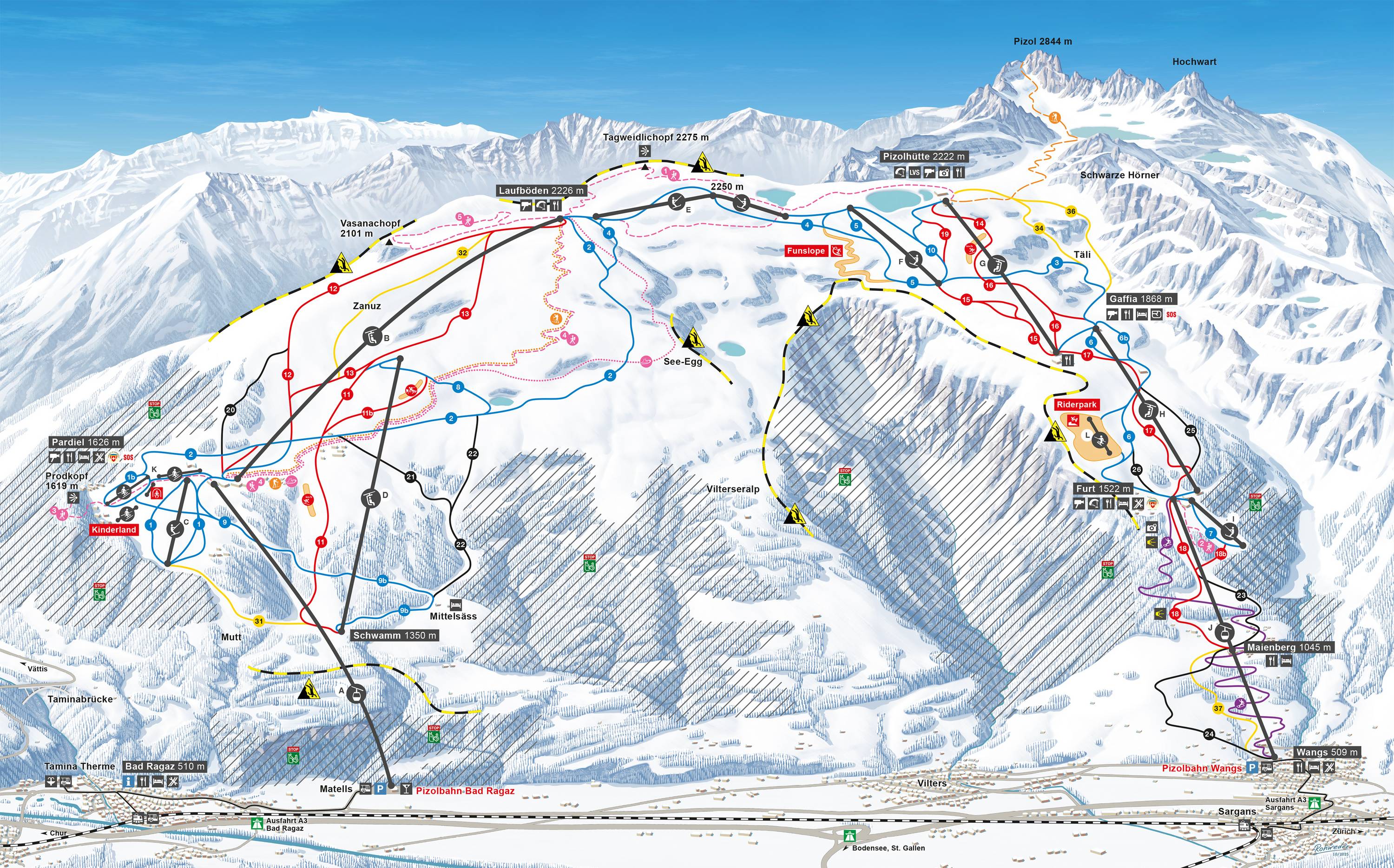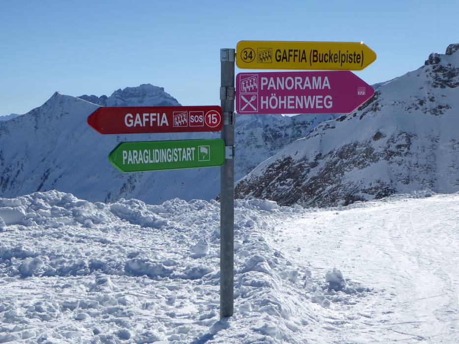 Orientierung (Pistenplan, Informationstafeln, Ausschilderung) und Sicherheit im Skigebiet Pizol – Bad Ragaz/Wangs