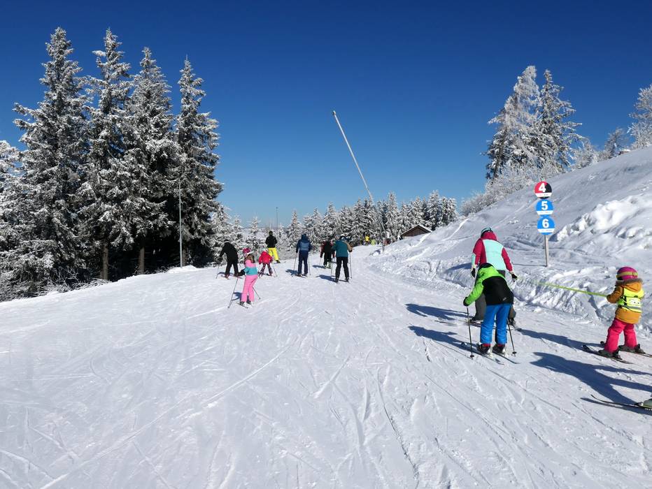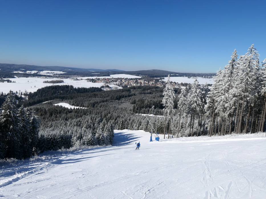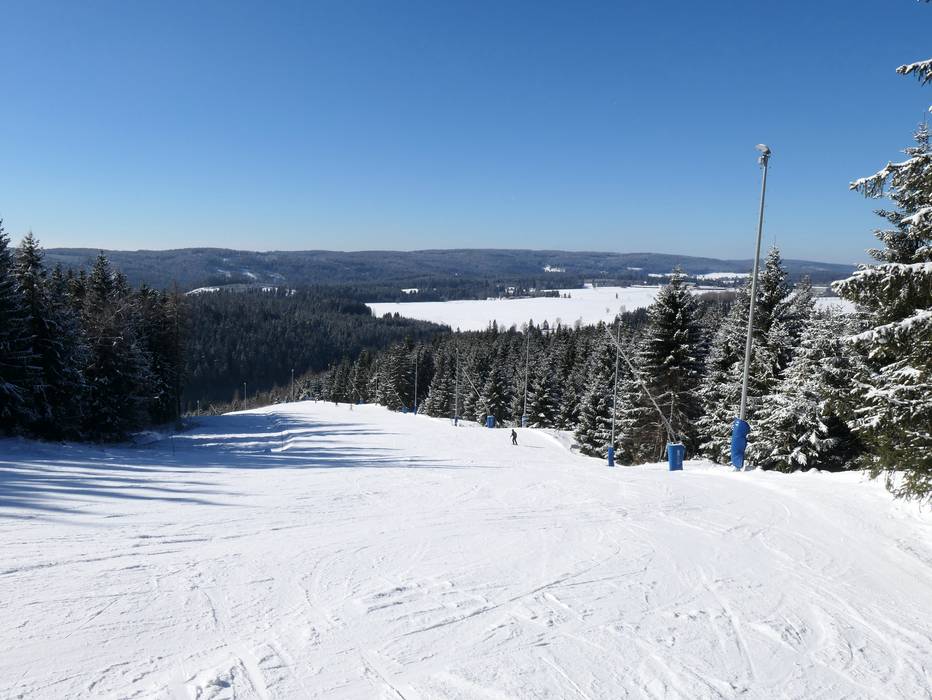 Vom höchsten Punkt am Pleßberg (Plešivec) über blaue Pisten zur Talstation in Pstruží