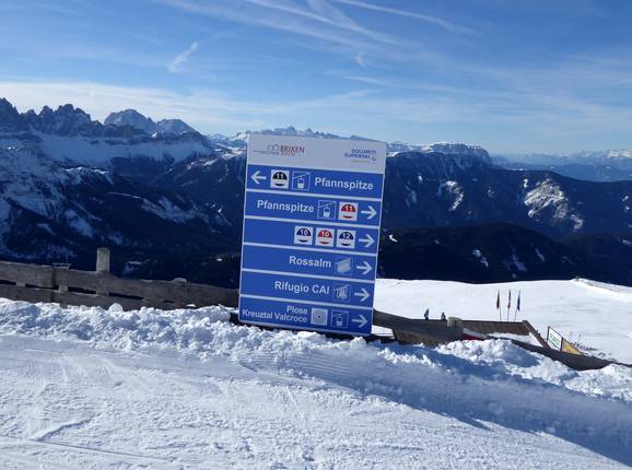Orientierung (Pistenplan, Informationstafeln, Ausschilderung) und Sicherheit im Skigebiet Plose – Brixen