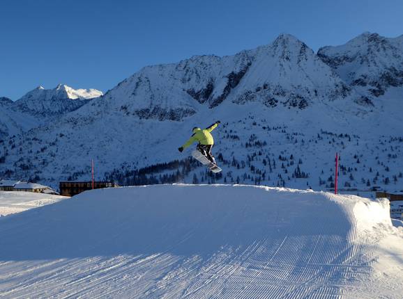 Das Skigebiet Pontedilegno-Tonale bietet am Passo Tonale einen großen Snowpark.