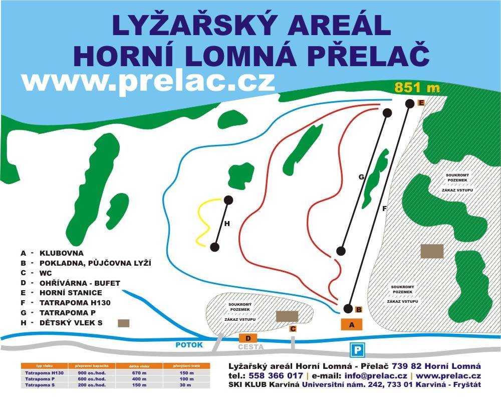 Pistenplan vom Skigebiet Přelač – Horní Lomná