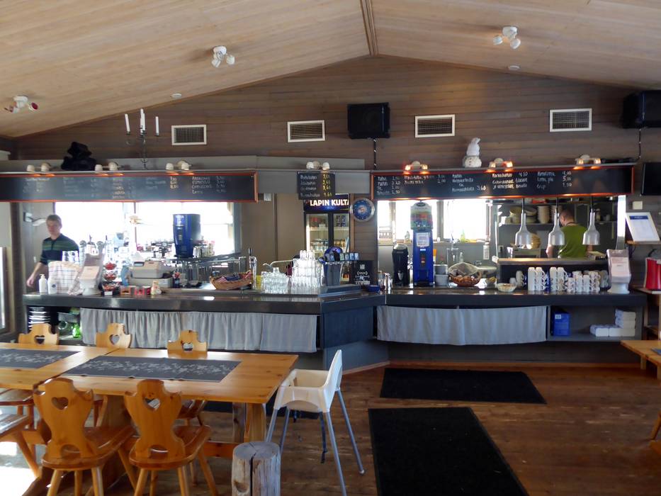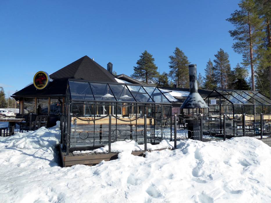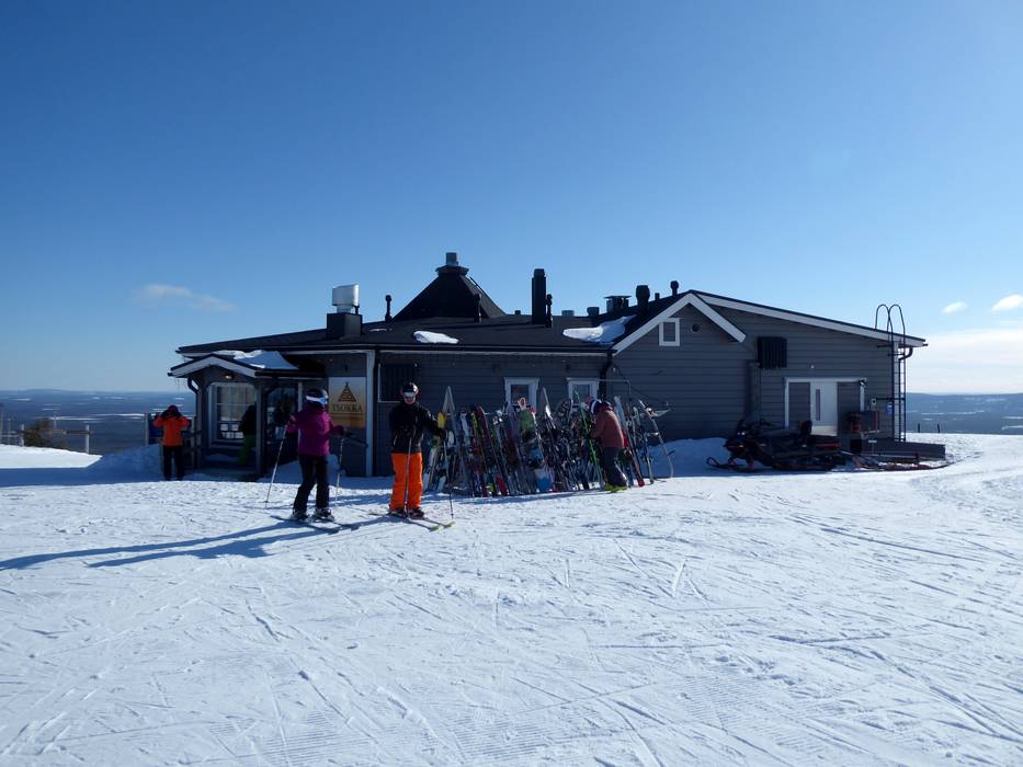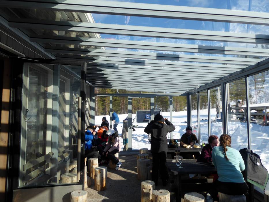 Die höchste Einkehrmöglichkeit im Skigebiet von Pyhä befindet sich auf dem Gipfel des Kultakero. Es ist ein stimmungsvolles Restaurant in einer lappländischen Hütte. Die große Terrasse bietet einen herrlichen Blick über Lappland und wenn es klar ist sogar bis nach Russland.