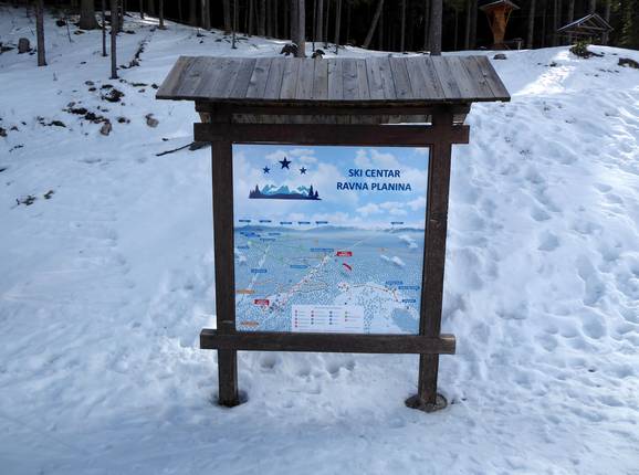 Der Pistenplan bildet das Skigebiet Ravna Planina schemenhaft ab. Es sind alle Pisten und Lifte eingezeichnet. Höhenangaben wären noch hilfreich.