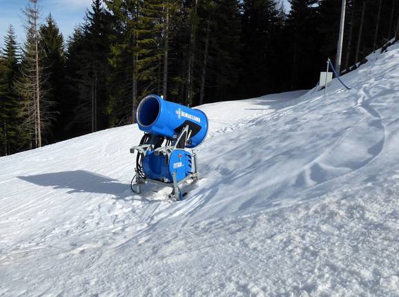 Das Skigebiet Ravna Planina kann nahezu alle Pisten beschneien. Für genügend Schneiwasser sorgen zwei Schneiteiche. Aufgrund der geringen Höhenlage endet die Saison meist schon immer im März.