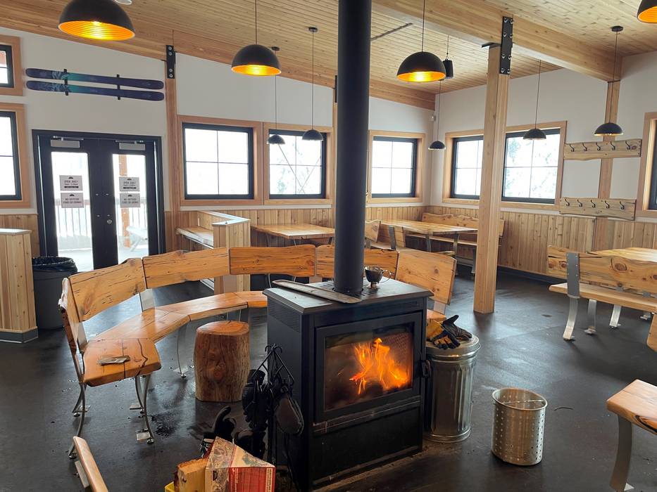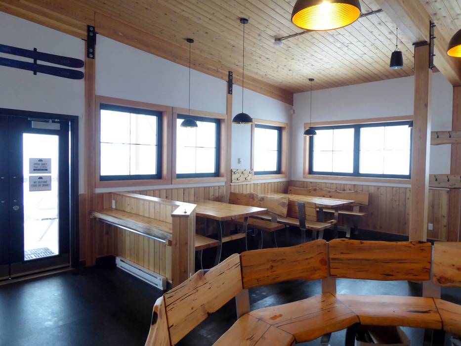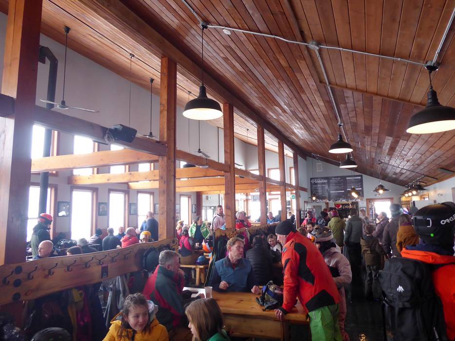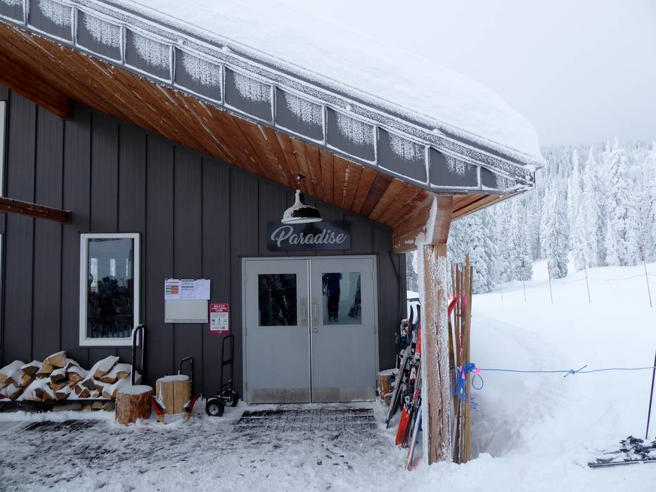 Die urige Paradise Lodge bietet gutes Kanadisches Essen und eine große Getränkeauswahl. Hier kann man sich an kalten Tagen am Berg stärken. Bei schönem Wetter lockt die Sonnenterrasse.