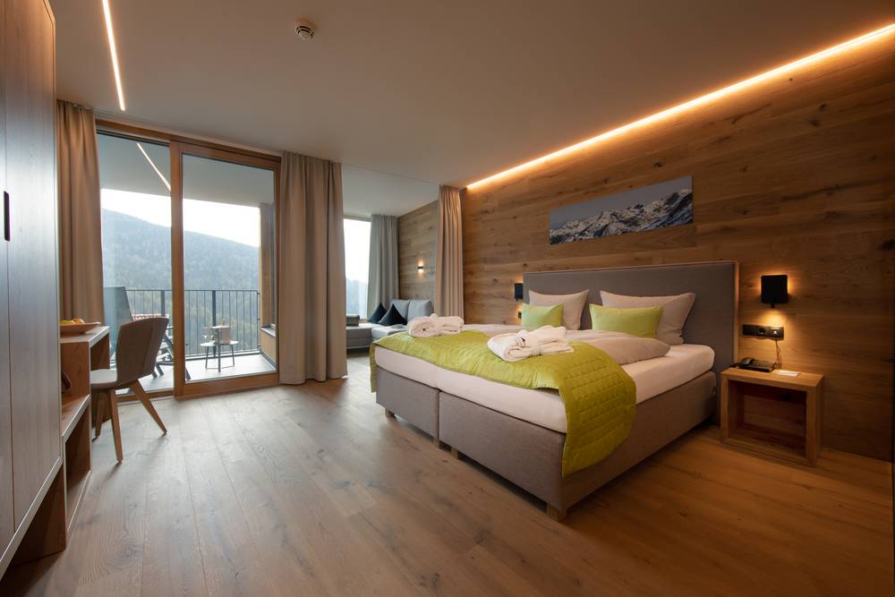 Bei deiner Rückkehr kannst du im Restaurant „San Martin“ Sarner Spezialitäten, Südtiroler Köstlichkeiten und mediterrane Delikatessen verkosten, im Panorama-Wellness-Bereich mit Rooftop-Spa entspannen oder in deinem Zimmer mit Gipfelblick traute Zweisamkeit genießen.
