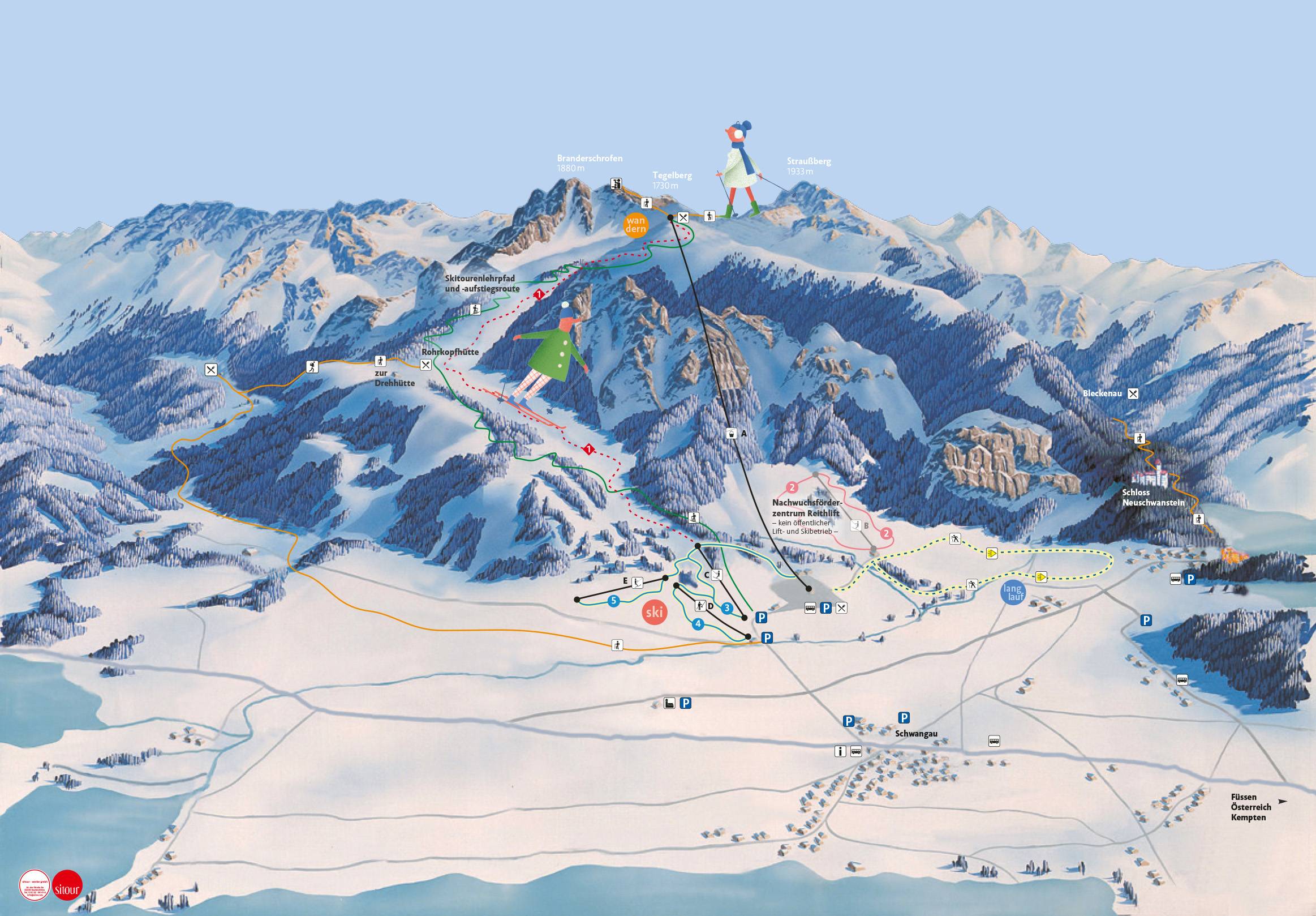 Schwangau (2,4 km), Hohenschwangau (3,2 km), Füssen (5 km) Orte am Skigebiet