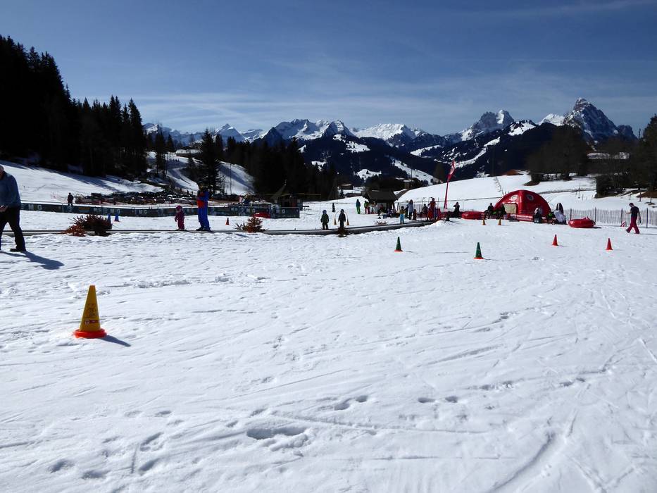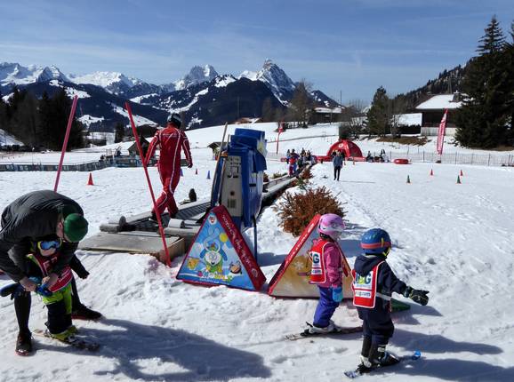 Das Übungsgelände in Saanenmöser wird von der Schneesportschule Saanenmöser betrieben und befindet sich direkt neben der Talstation des Schlepplifts Lätz Güetli. Ein Förderband bringt die Kleinen schnell und sicher nach oben. Lustige Figuren runden das Angebot ab.