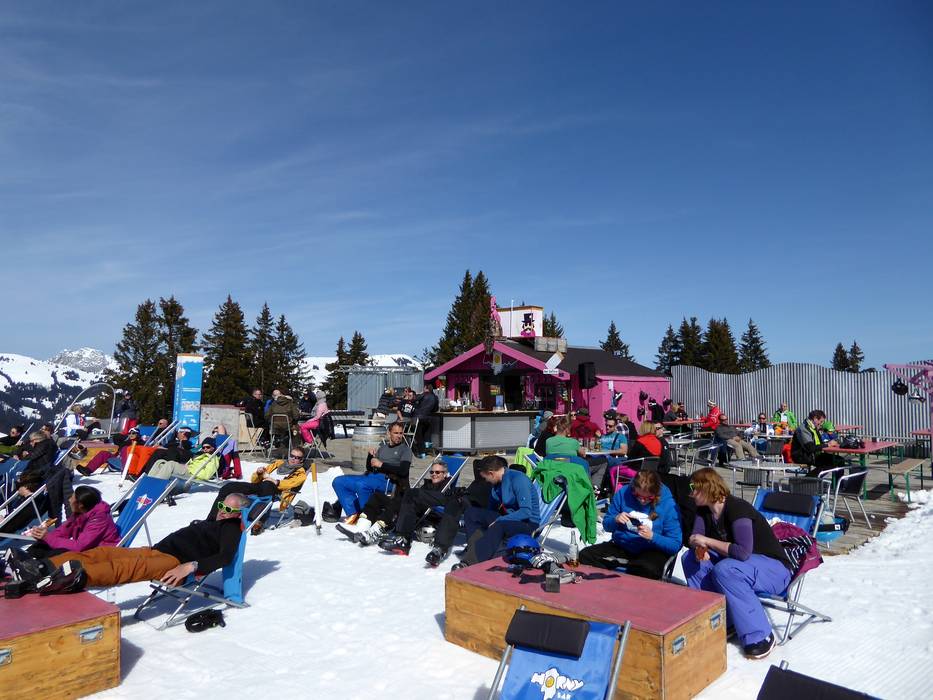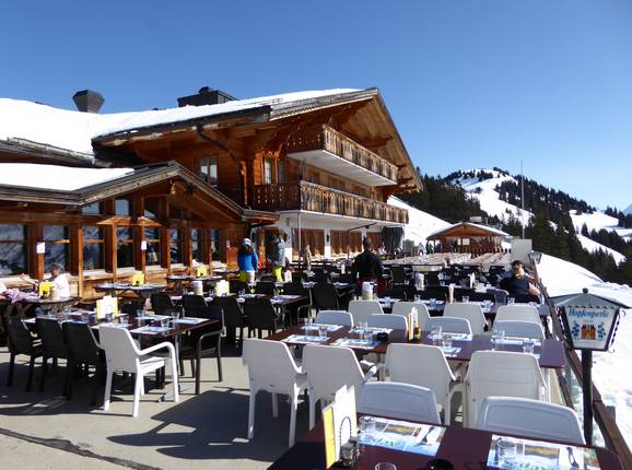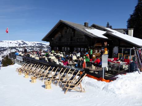 Im gesamten Skigebiet sind urige und nette Hütten verteilt. An den Bergstationen der Gondelbahnen findet man größere Restaurants mit Selbstbedienung. Generell bieten die Einkehrmöglichkeiten zumeist regionale Küche. Jedes Wochenende bietet das Bergrestaurant Rinderberg volkstümliche Unterhaltung. Einige Bars an den Pisten laden zum Verweilen ein. Ein Drink an der Iglu-Bar im Iglu-Dorf Gstaad rundet das Angebot ab.