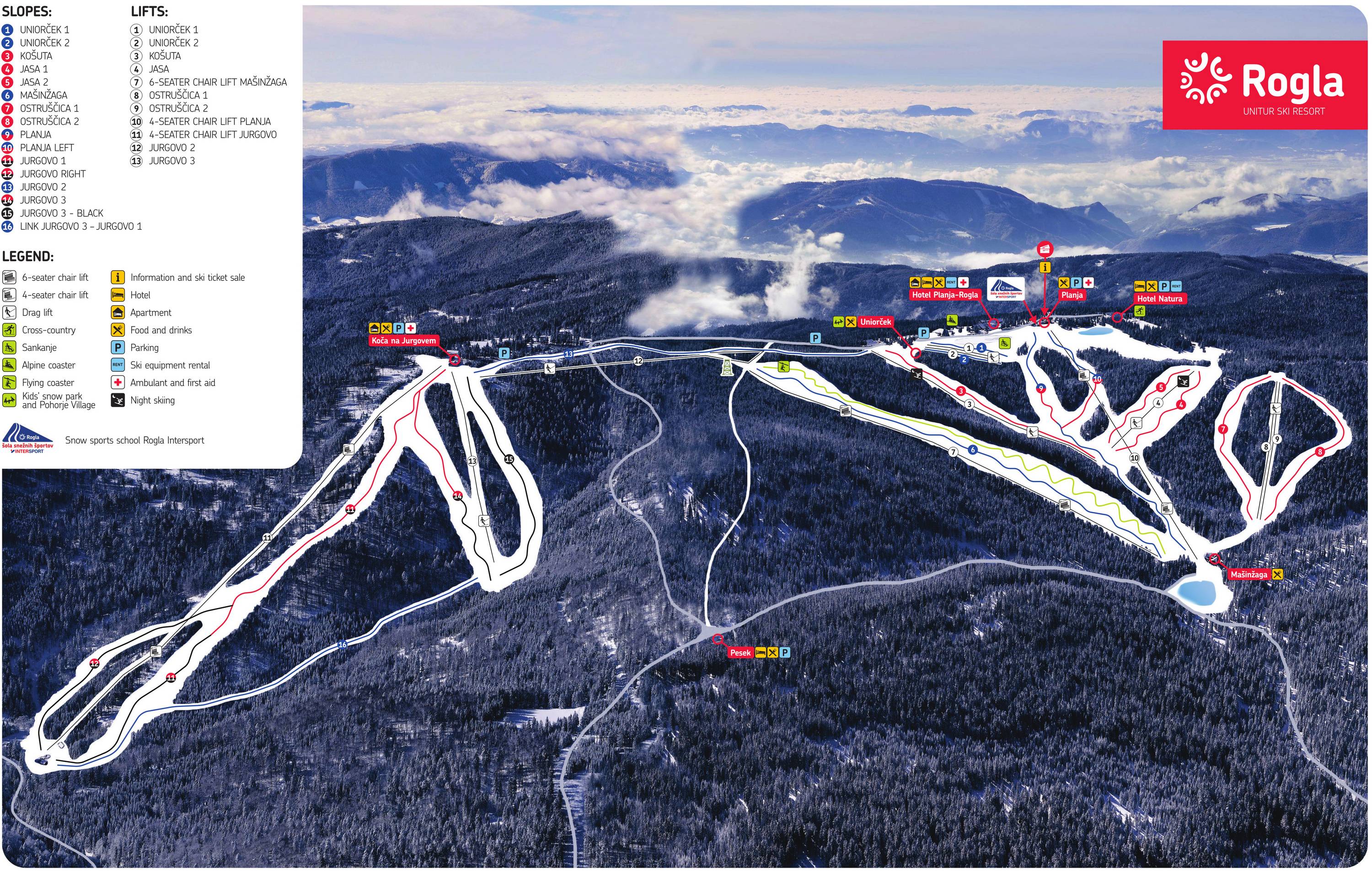Rogla (0,1 km), Oplotnica (12 km), Zreče (16 km) Orte am Skigebiet