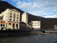 Rosa Khutor ist das größte der Skigebiete von Krasnaja Poljana. Mit der Vergabe der XXII. Winterolympiade an die Schwarzmeermetropole Sotschi entstanden in und um den damaligen 3000-Seelen-Ort Krasnaja Poljana innerhalb weniger Jahre mehrere neue Skigebiete zum Skifahren und Snowboarden. Die