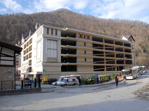 Rosa Khutor ist eines der am schnellsten erreichbaren Skigebiete der Welt. Ab der Saison 2013/14 gelangt man mit dem Schnellzug vom Flughafen Adler in nur 25 Minuten bis an die Talstation der Seilbahn von Alpica Service (Lift- und Pistenverbindung mit Rosa Khutor), welche direkt vom Bahnsteig bergwärts führt. Mit dem Taxi oder dem Mietwagen dauert es vom Flughafen rund 40 Minuten, es verkehren auch regelmäßig Busse. An der Talstation verschwinden die Autos in einem großen Parkhaus, für starke Tage stehen zusätzlich Parkplätze zur Verfügung.
