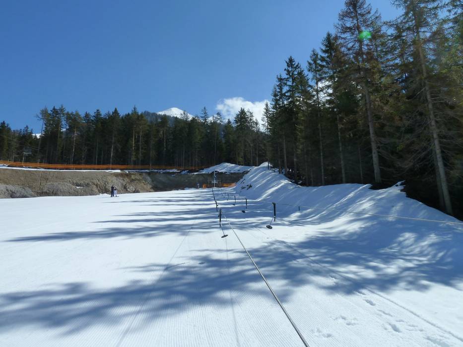 Sportis Kinderland bietet Förderbänder verschiedener Länge und einen Teller-Seillift. Der abgegrenzte Bereich liegt an der Talstation neben der Schialm und ist über eine Fußgängerbrücke erreichbar. Das Gelände ist ideal für die ersten Schritte im Schnee.