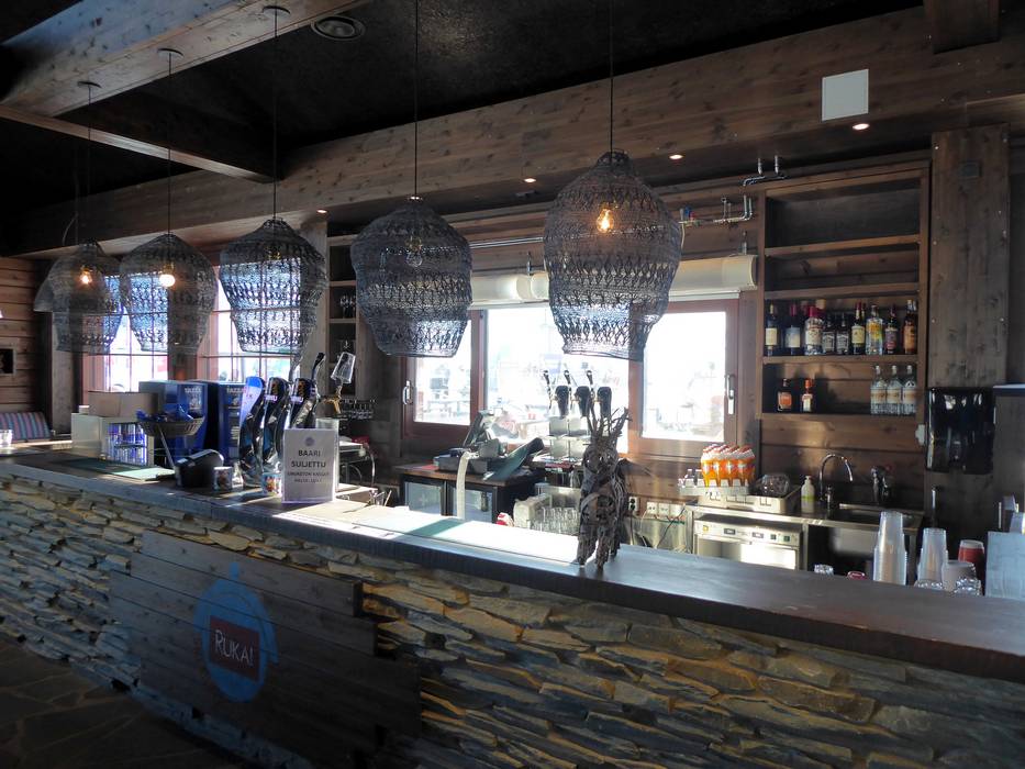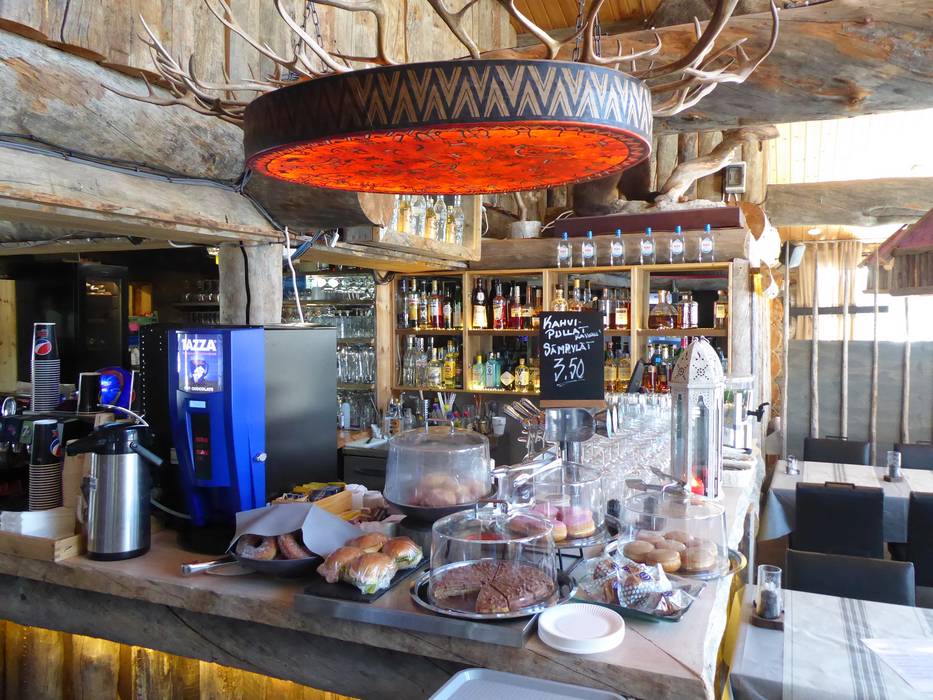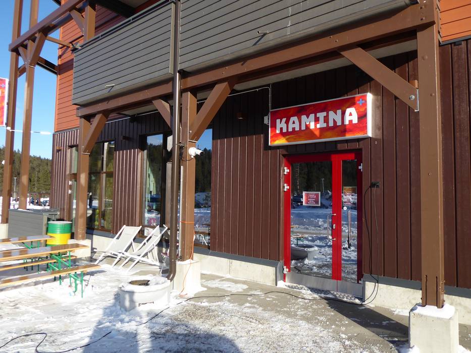 Das SkiBistro Ruka bietet einen wärmenden Kamin und eine nette Bar. Bei schönem Wetter lockt die Sonnenterrasse.