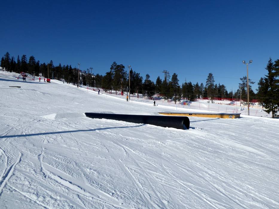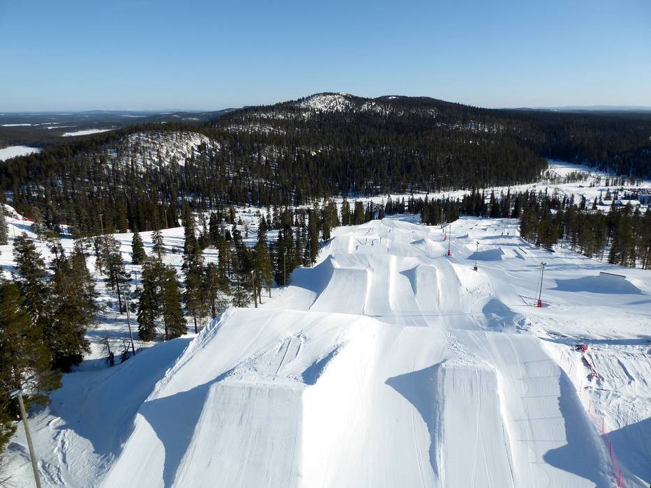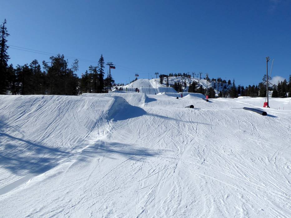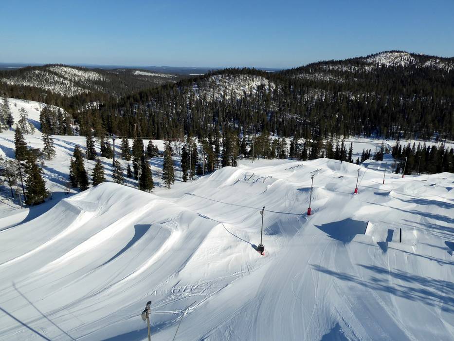 Das Skigebiet Ruka bietet neben Finnlands größtem Snowpark auch weitere kleinere Parks und eine Superpipe.