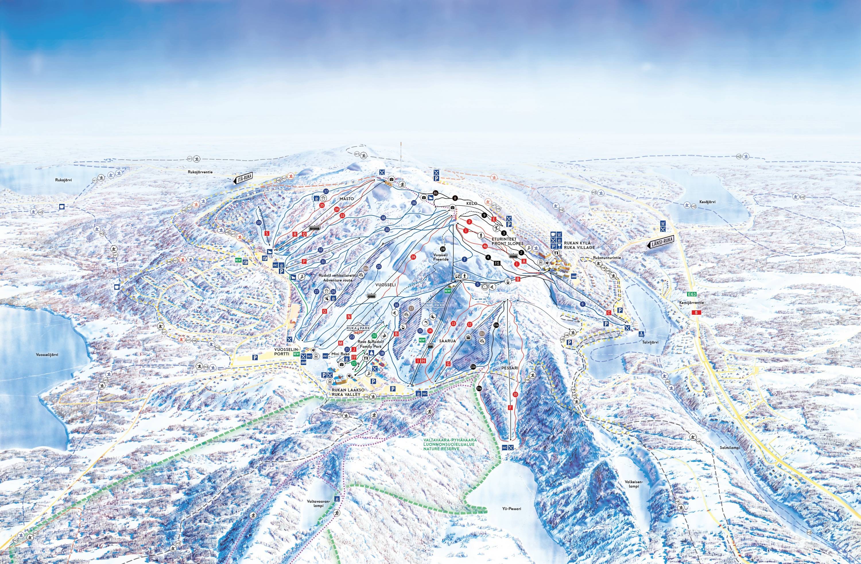 Ruka Village (0,1 km), Ruka Valley (0 km), Kuusamo (27 km) Orte am Skigebiet
