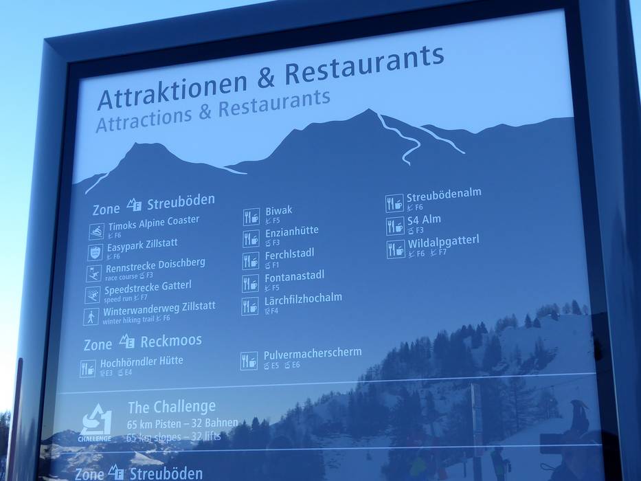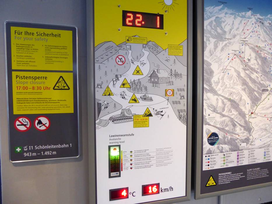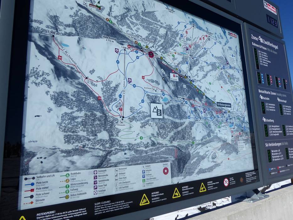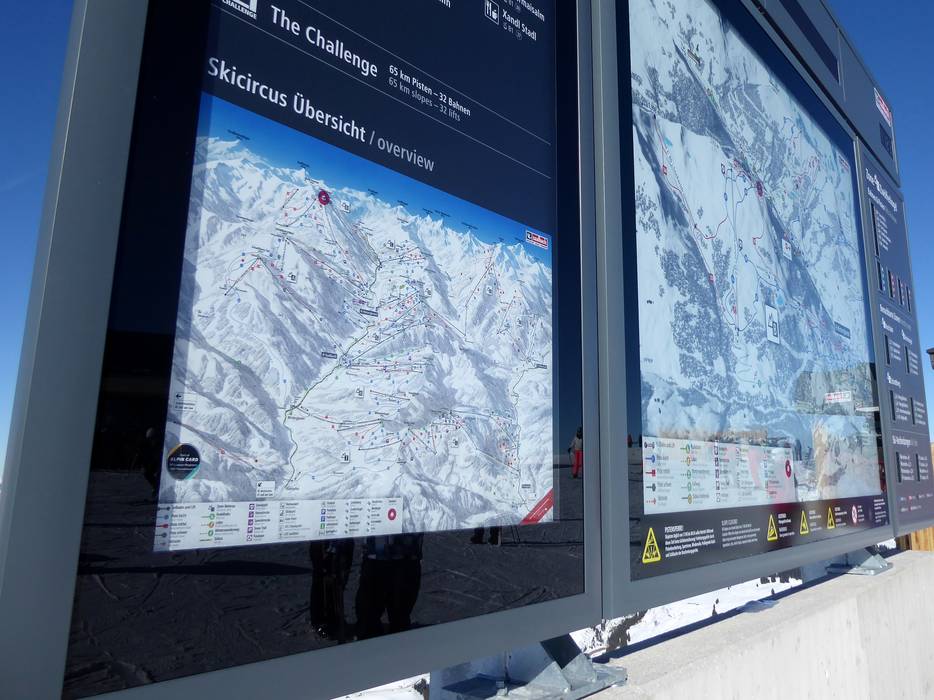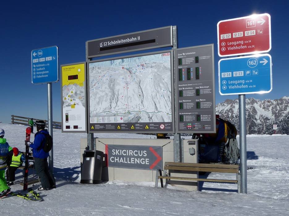 Orientierung (Pistenplan, Informationstafeln, Ausschilderung) und Sicherheit im Skigebiet Saalbach Hinterglemm Leogang Fieberbrunn (Skicircus)