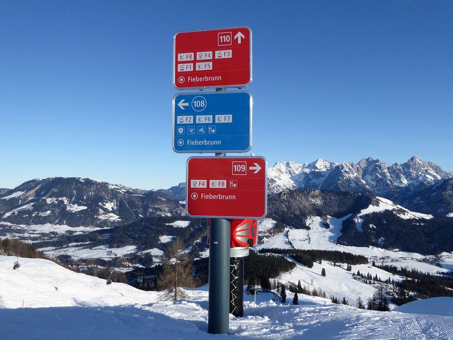 Die Ausschilderung auf den Pisten ist vorbildlich. Die Schwierigkeitsgrade der Pisten werden mit Farben und Formen ganz klar gekennzeichnet. Piktogramme ermöglichen eine schnelle Wahrnehmung und sind in allen Sprachen verständlich. Die zahlreichen Wegeschilder zeigen zudem Fernziele, Attraktionen und sind oft mit Pistenplänen ergänzt. Die großen Panorama- bzw. Informationstafeln zeigen den aktuellen Status und die Pistenpläne in Detail- und Gesamtansicht (an den Talstationen die Gesamtübersicht, am Berg die Detailansicht, oft auch beides). Pistenmarkierungen haben Notfallrufnummern auf der Rückseite. Die Portale an den Lifteingängen zeigen Standortangaben, Pistenhinweise und Verbindungen. Besser geht es nicht.