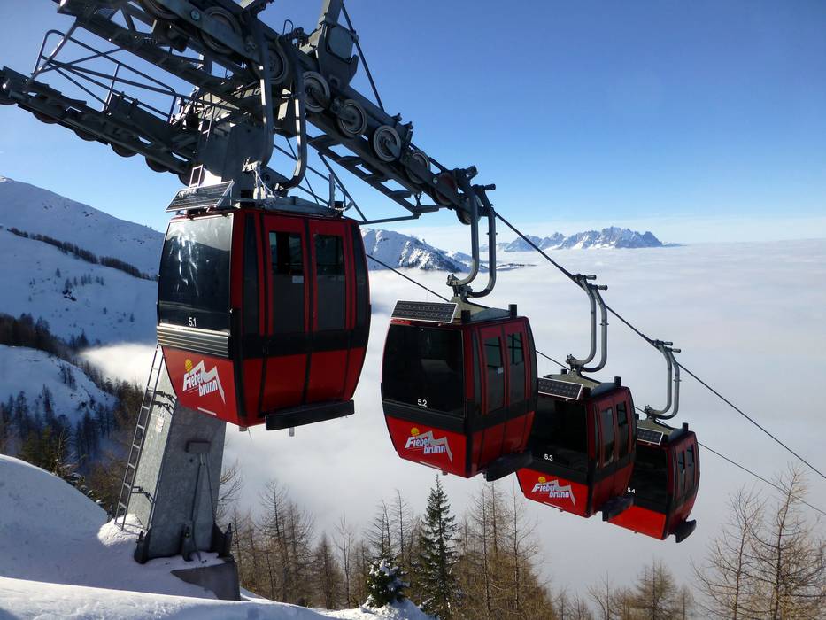 Seit der Saison 2015/16 verbindet die 10er-Gondelbahn E5+E6 TirolS Fieberbrunn mit Saalbach Hinterglemm Leogang. Das Skigebiet erstreckt sich nun über Tirol und das Salzburger Land. Die Lifte und Bahnen sind auf dem neuesten Stand der Technik und einheitlich mit einem tollen Design beschriftet. Man fährt zumeist mit schnellen und beheizten Sessel- und Gondelbahnen auf den Berg. Der Großteil der Sesselbahnen ist zusätzlich mit Hauben ausgestattet. Besser geht es nicht mehr. Für die Anfänger stehen Schlepp- und Tellerlifte im Skigebiet verteilt bereit.